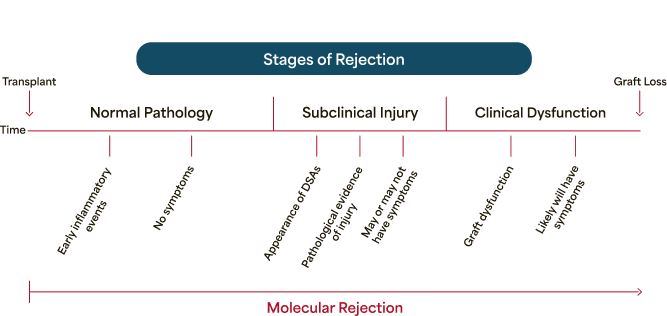 Rejection begins before clinical signs and symptoms can be observed. Molecular rejection testing can reveal it.